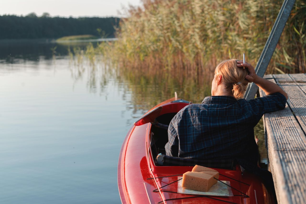 Nach dem Tod ihres Vaters begibt sich Kerstin (Christina Große) an einen erinnerungsreichen Ort ihrer Kindheit. Sie setzt das rote Kajak ins Wasser und beginnt, über die Mecklenburgische Seenplatte zu gleiten. Zwischen Tourismus und Tristesse wird das Kajak für sie zur schützenden Kapsel – bis sie eines Tages der forschen Alima (Pegah Ferydoni) begegnet, die der im Kreis paddelnden Einzelgängerin endlich die richtigen Fragen stellt.