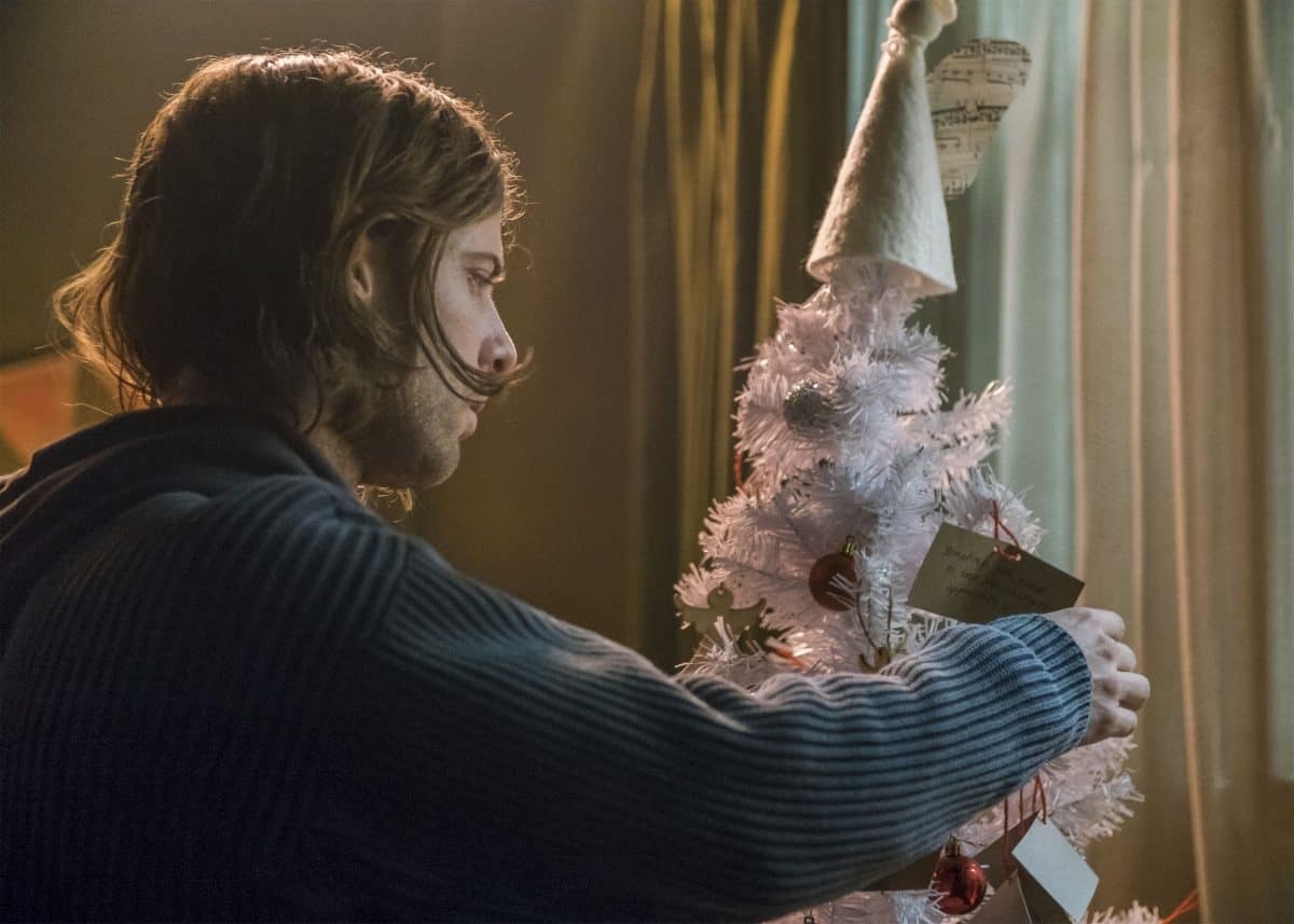 Ein Weihnachtsbaum voller guter Gedanken: James (Luke Treadaway) liest einen der vielen Zettel am Baum, die Mut machen sollen
