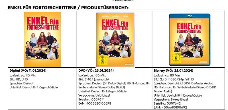 Wolfgang Groos‘ Fortsetzung des Kassenschlagers „Enkel für Anfänger“ bietet einen warmherzigen und humorvollem Blick auf den Clash der Generationen. Die hochwertige Feel-Good-Komödie mit Maren Kroymann, Barbara Sukowa und Heiner Lauterbach erscheint bereits ab 11. Januar 2024 digital und ab dem 25. Januar als DVD und Blu-ray.